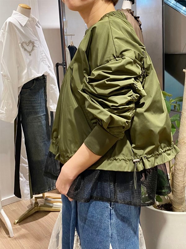 ミリタリーテイストにメッシュフリルで大人の可愛さ◎