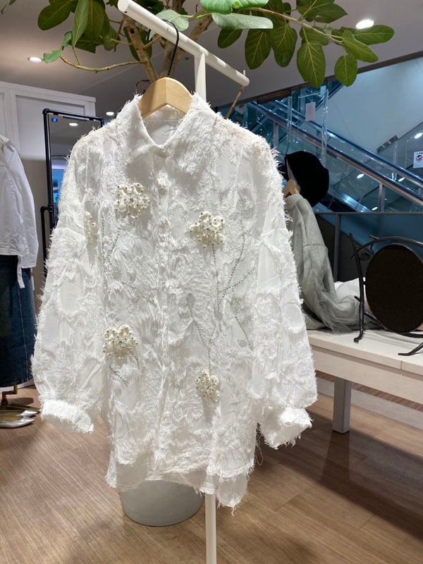 ▼Detail▼ ふわふわのフリンジに オーロラビーズとフラワーパッチを組み合わせた 可愛いがたっぷり詰まったブラウスです。 ※店頭と同時販売しているため、完売している場合がございます。 その場合は、キャンセル手続きさせていただきますの あらかじめご了承ください。 ▼Size▼ 着丈約76cm、身幅約62cm、裾幅約62cm 【素材・成分】 ポリエステル100%