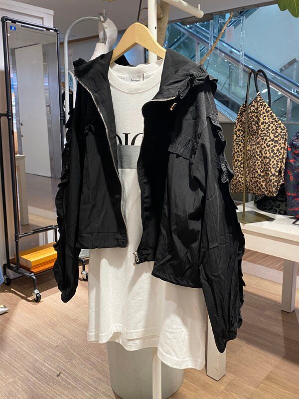 フリルが目を惹くコンパクトなブルゾン