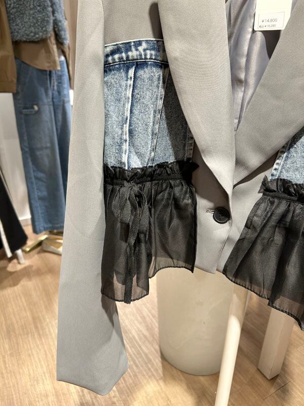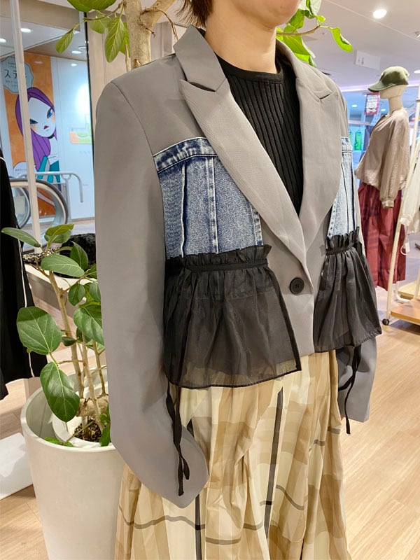 ▼Detail▼ 程よいビックショルダーが今季っぽさ◎なジャケット♪ 短めの着丈で、さっと羽織るだけで旬な表情が楽しめます! ※店頭と同時販売しているため、完売している場合がございます。 その場合は、キャンセル手続きさせていただきますの あらかじめご了承ください。 ▼Size▼ 着丈約46cm、 身幅約54.5cm、肩幅約54cm、袖丈61cm 【素材 成分】 ポリエステル100% モデル身長163cm
