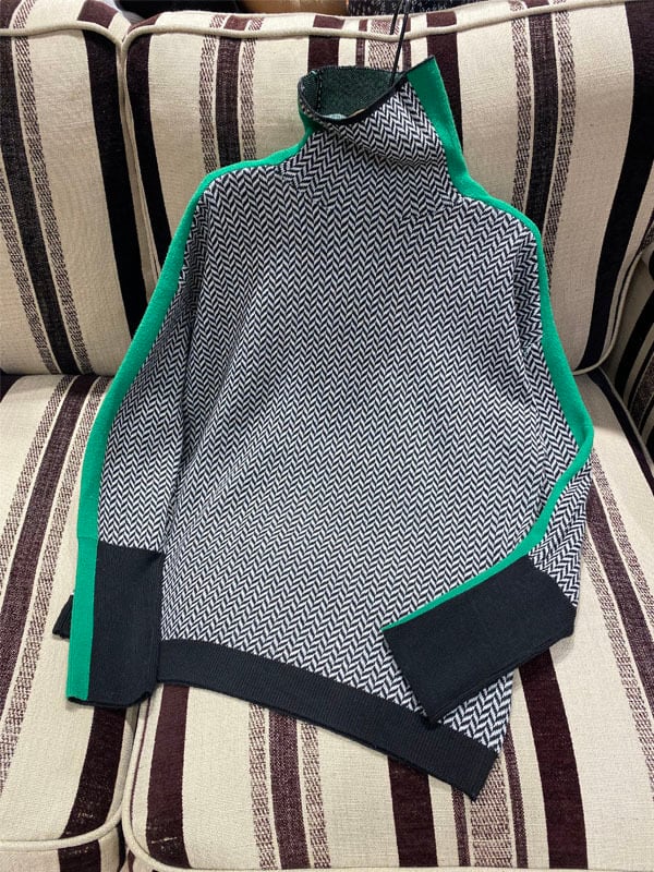 • バイカラーテープデザインプルオーバーニット[Color:ブラウン]