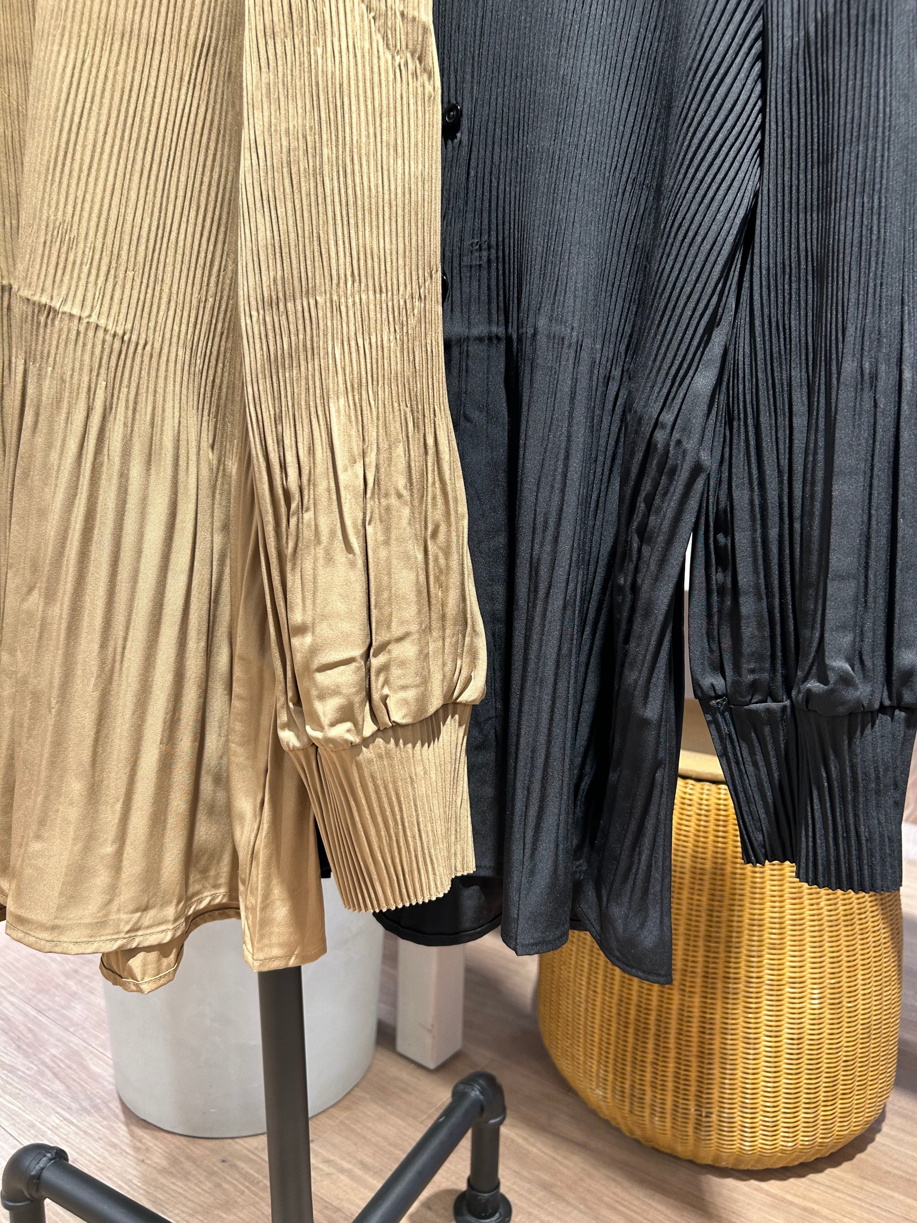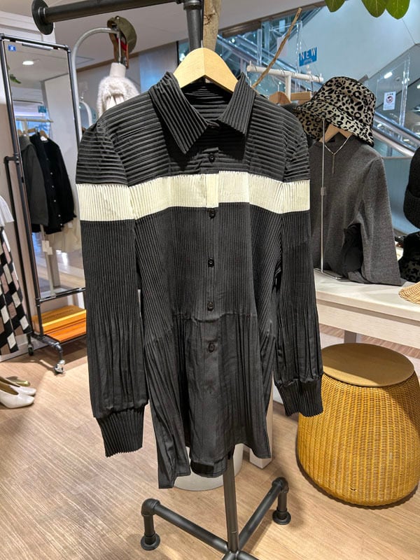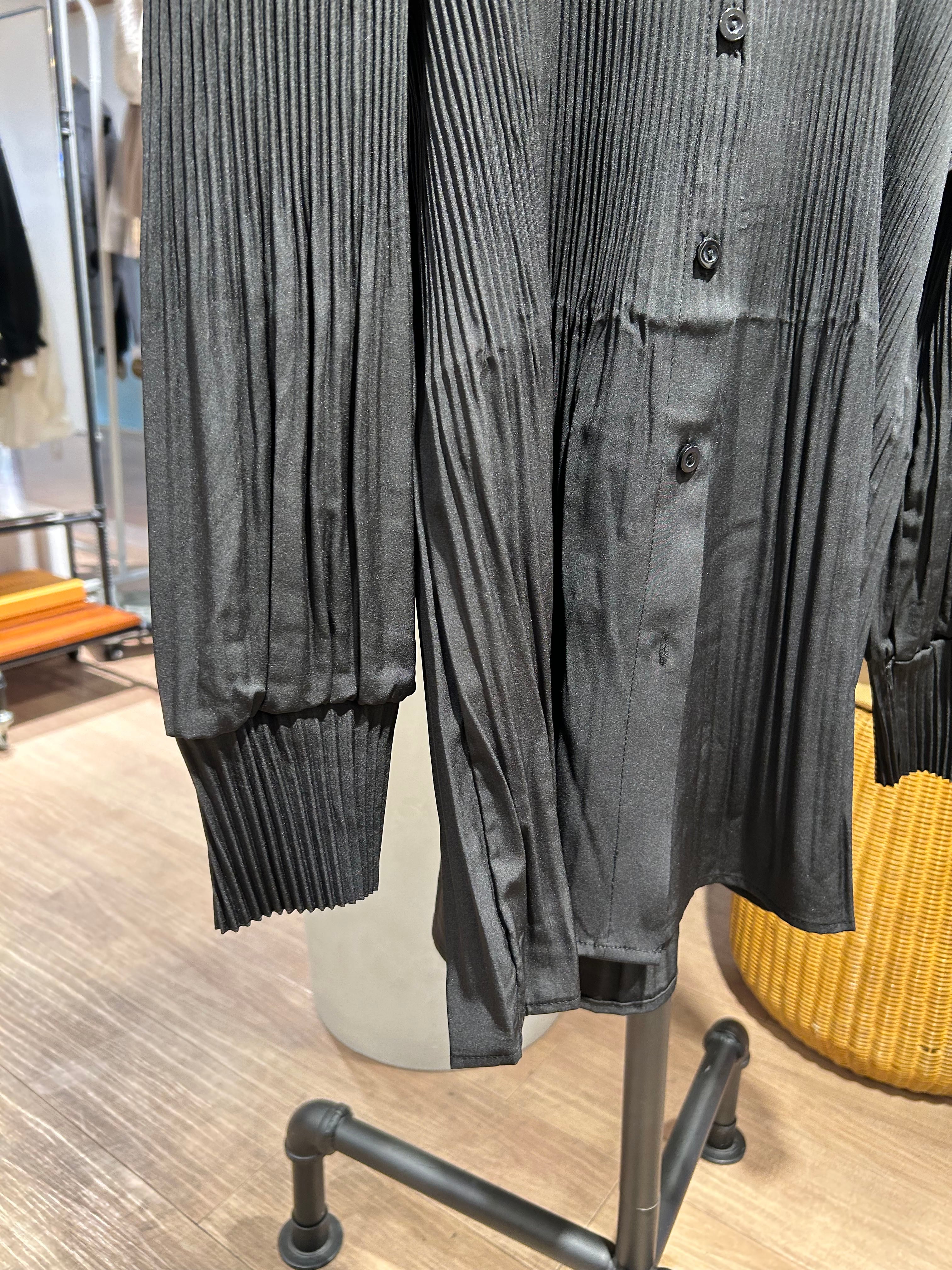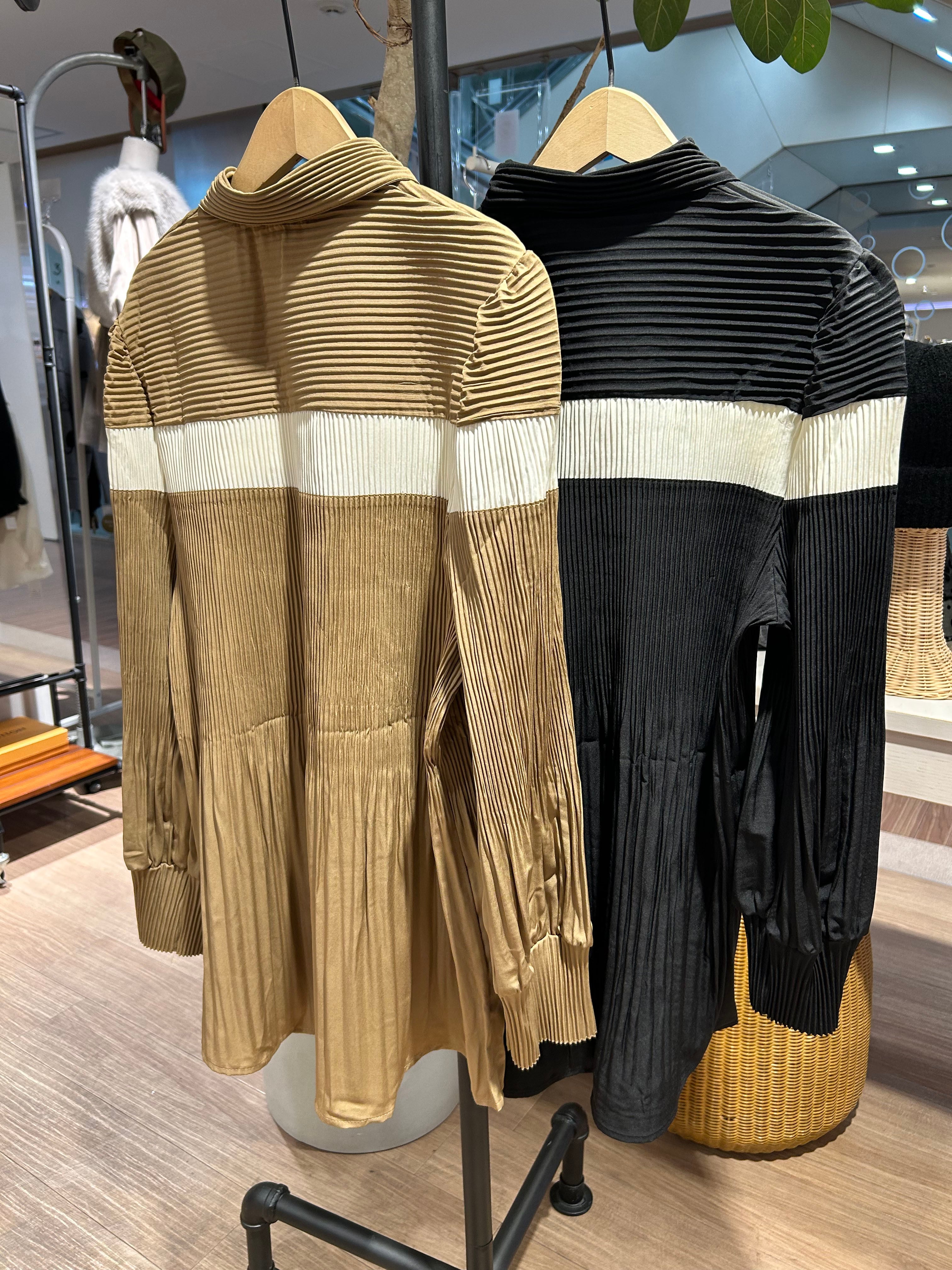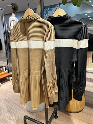 ボーダーラインプリーツ長袖ブラウス[Color:ブラック]