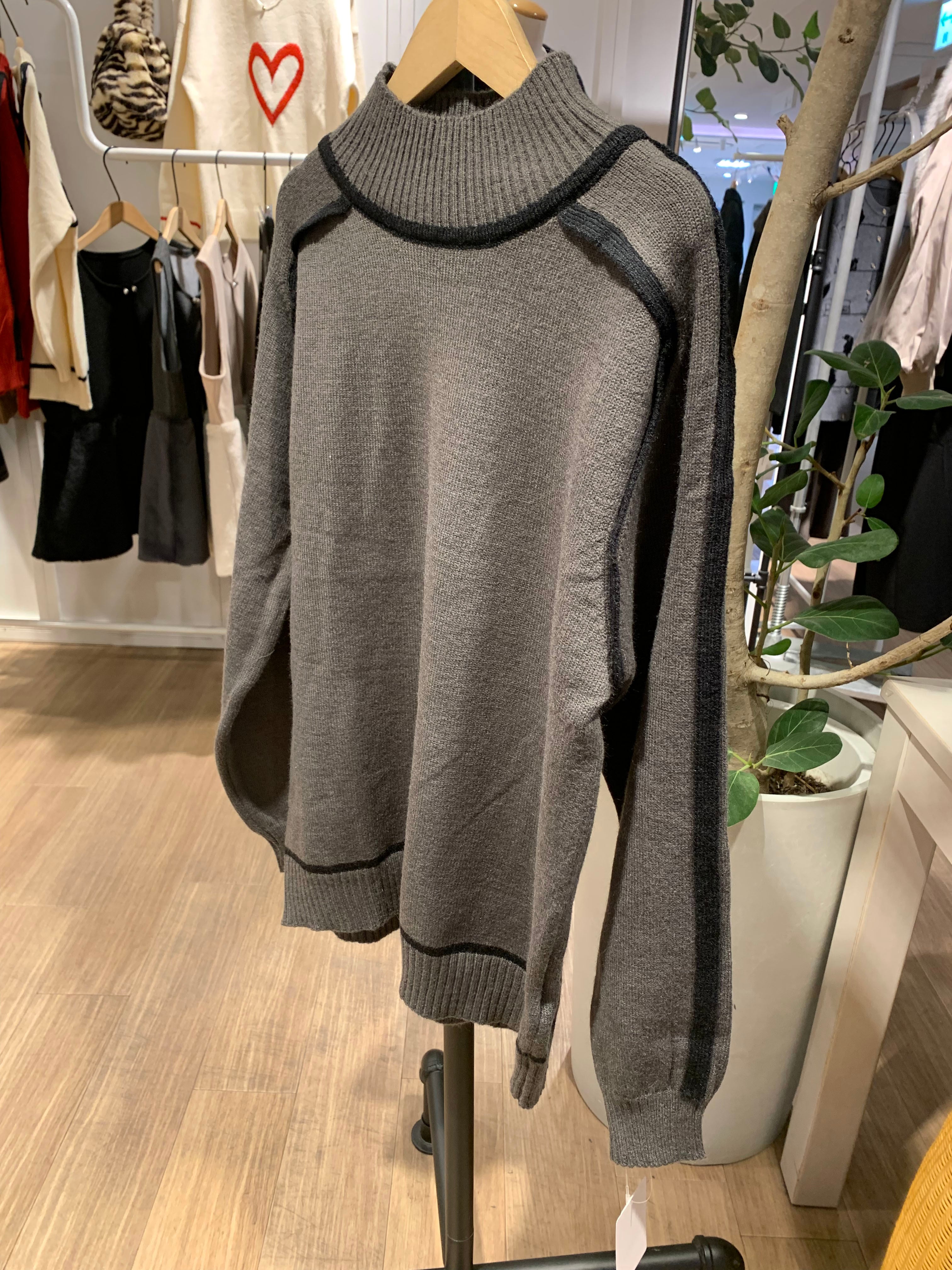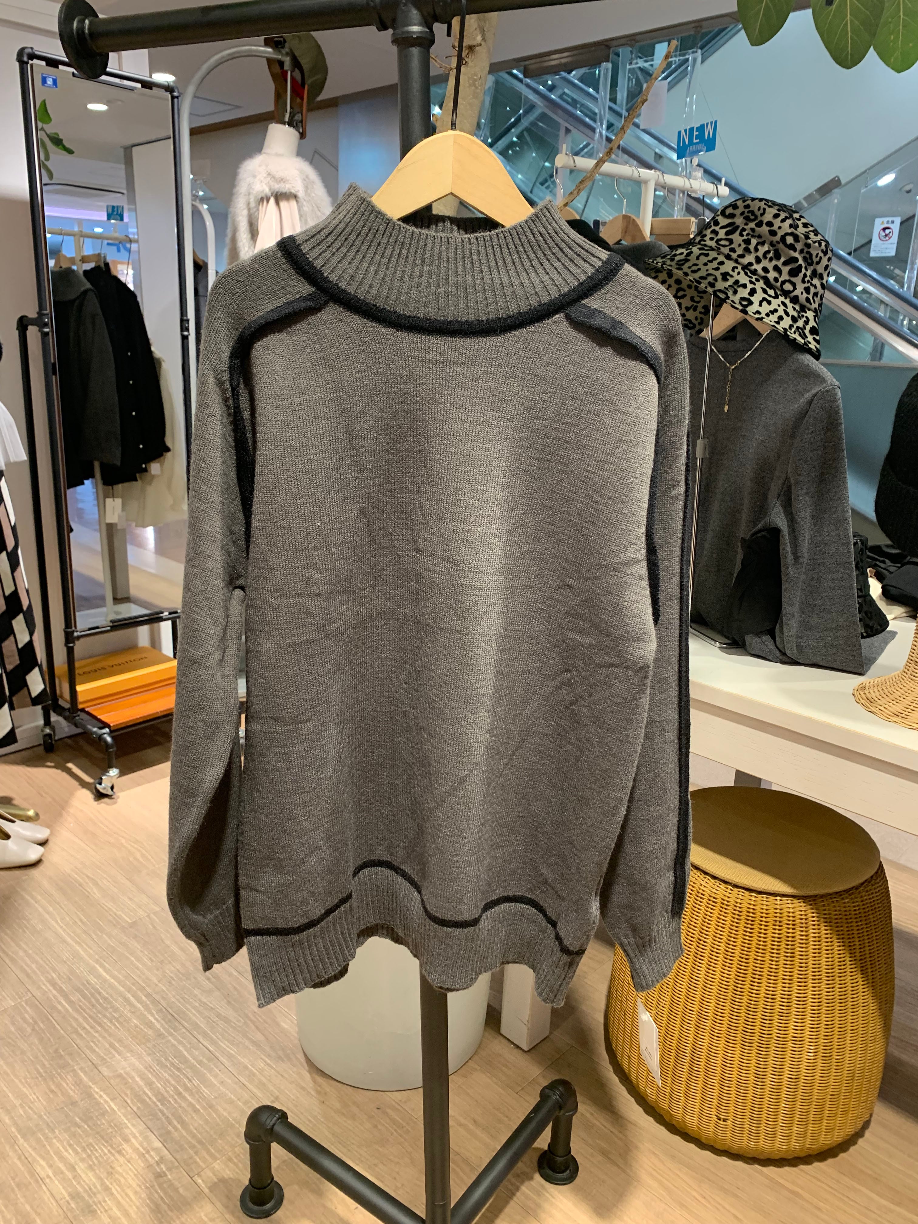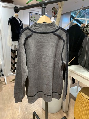 バイカラーテープデザインプルオーバーニット[Color:チャコール]