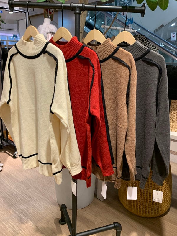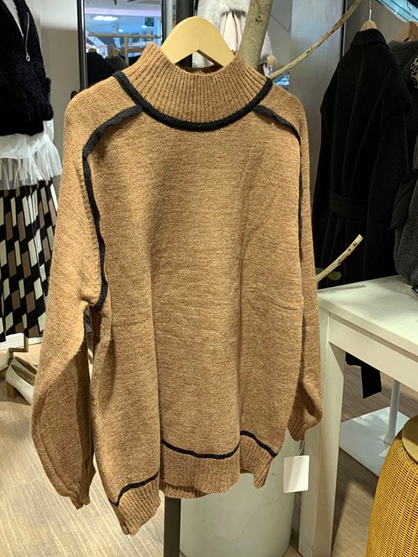 バイカラーテープデザインプルオーバーニット[Color:ブラウン]