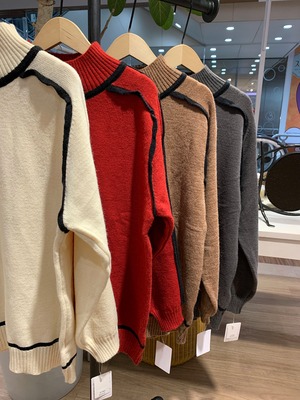 • バイカラーテープデザインプルオーバーニット[Color:レッド]
