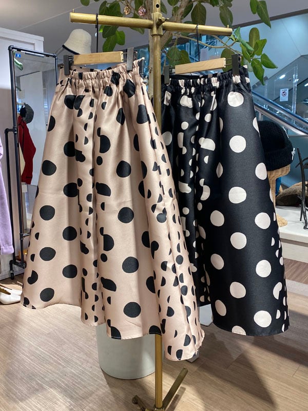 • ドット柄ボンディンフレアスカート[Color:ブラック]