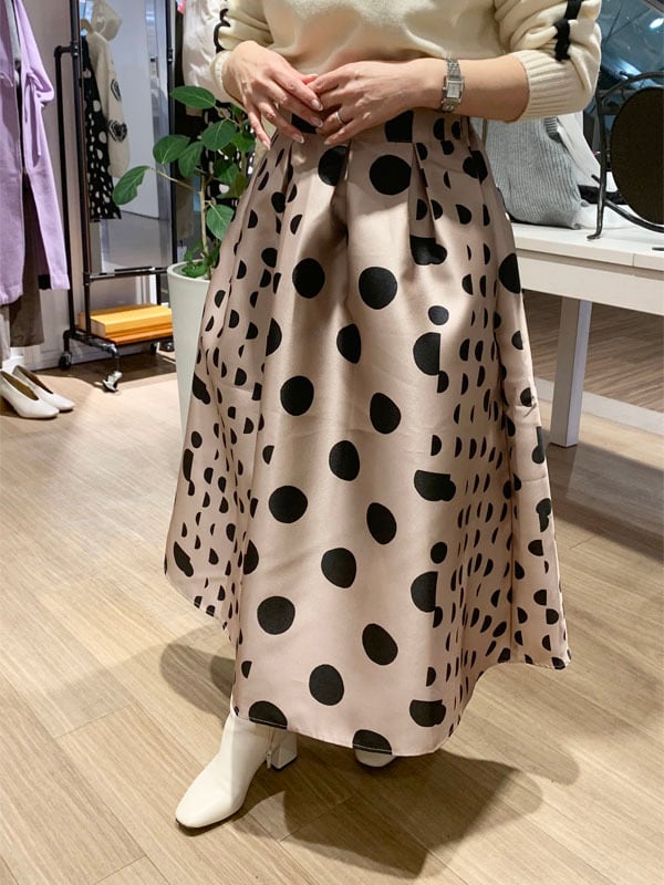 ドット柄ポリエステルフレアスカート[Color:ベージュ]