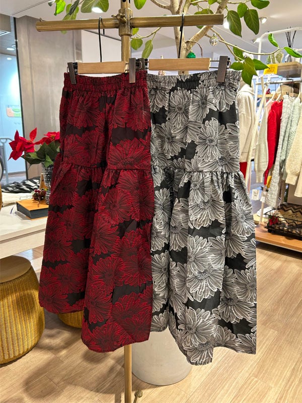 光沢感のある高級感あふれるジャガードスカート。