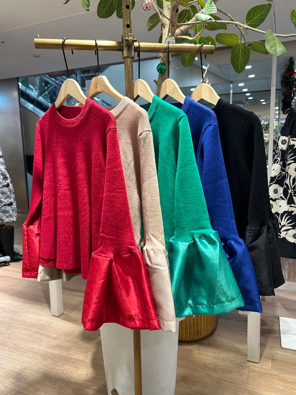 • お袖布帛切替長袖ニット[Color:グリーン]