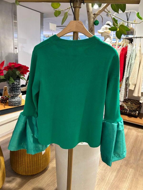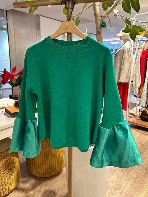 お袖布帛切替長袖ニット[Color:グリーン]
