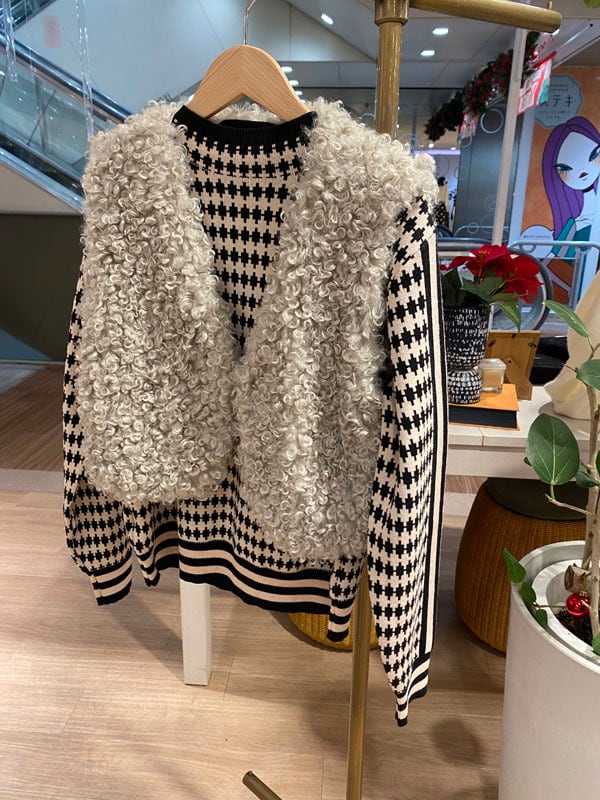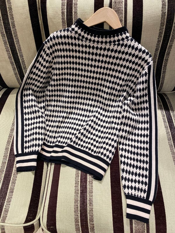 レトロ可愛い千鳥柄がこなれ感たっぷりのニット。