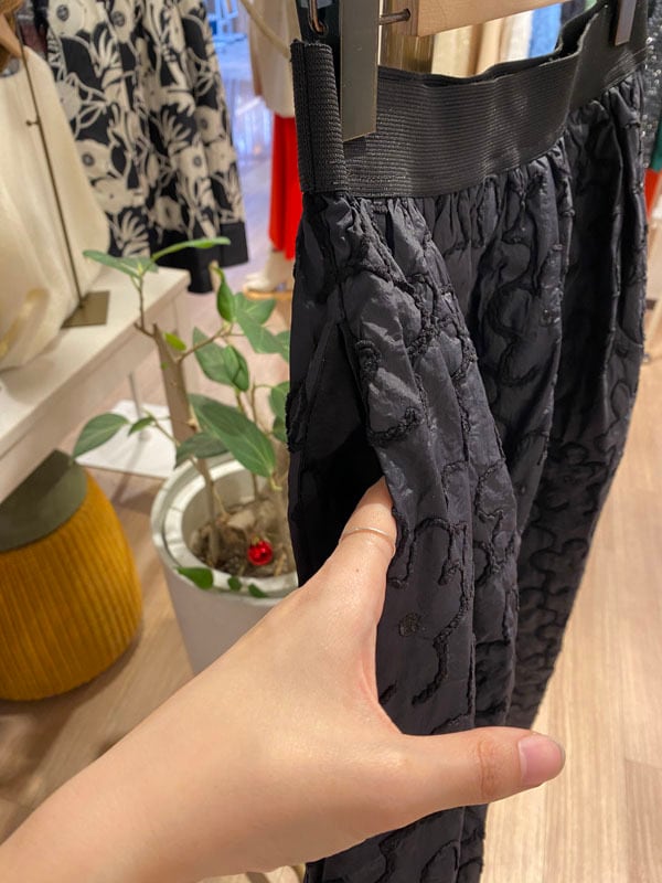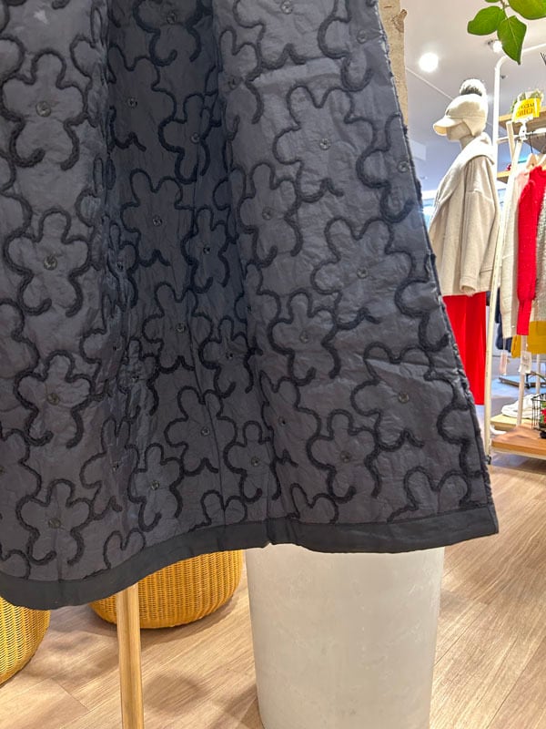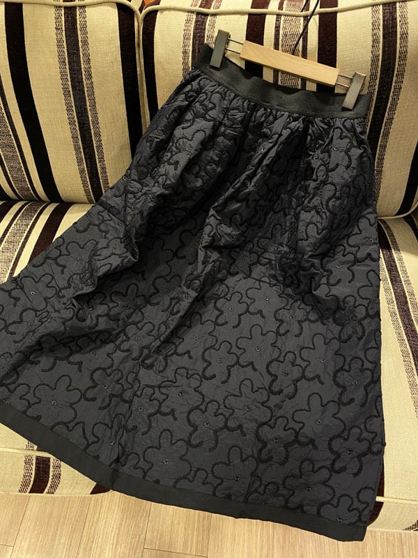立体感のあるフラワー刺繍がさりげなくお洒落見えするスカート。