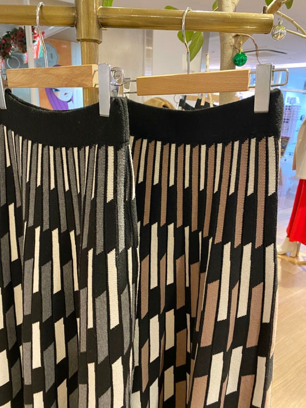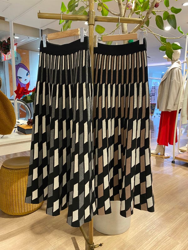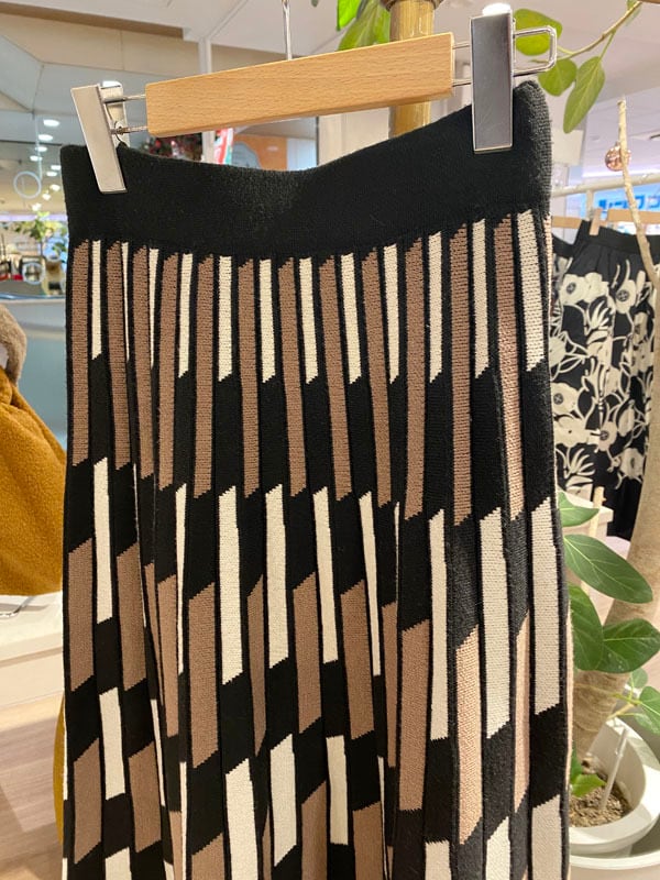 レトロ柄のニットフレアースカートは、