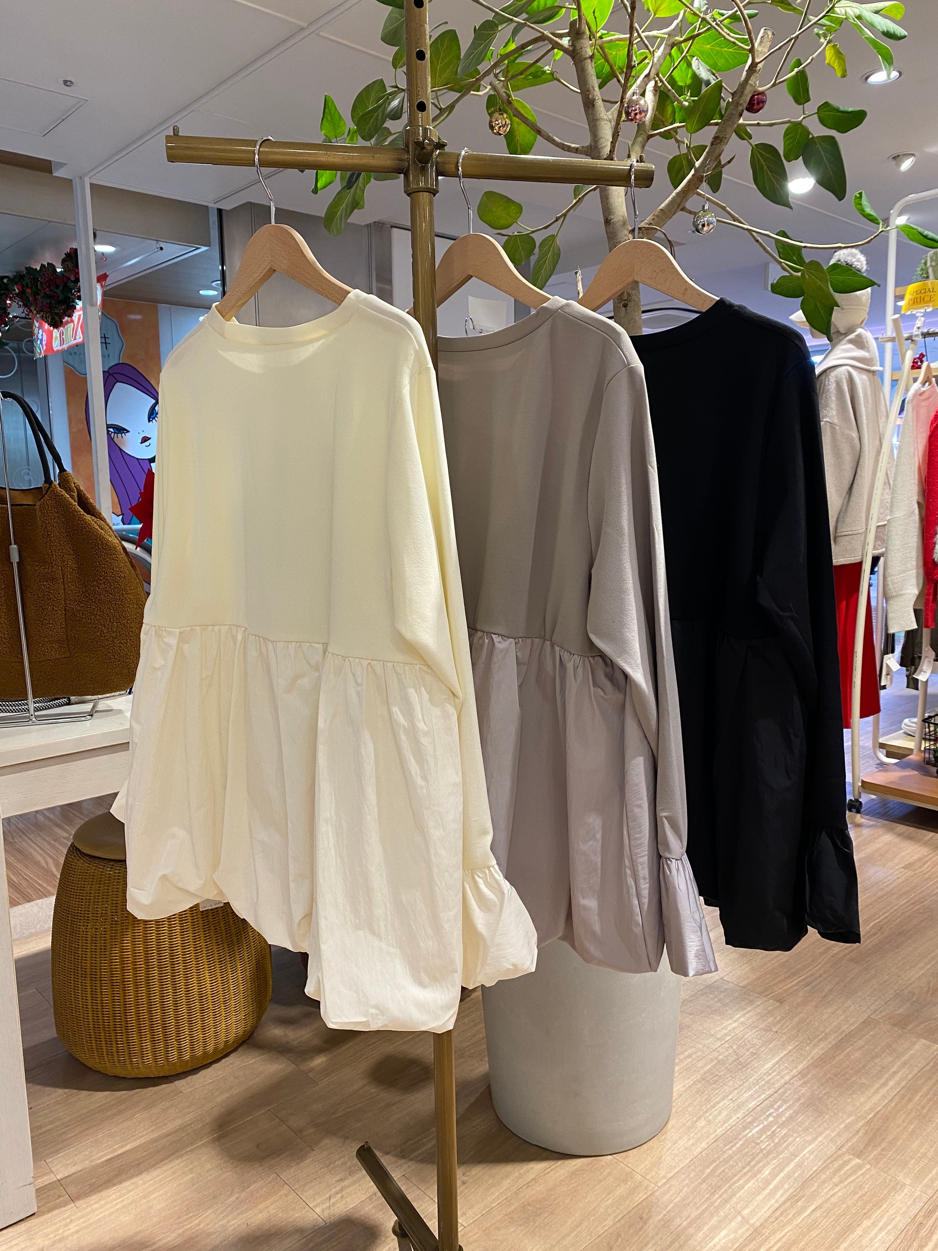 バルーンシルエット フレアスリーブトップス[Color:ブラック]