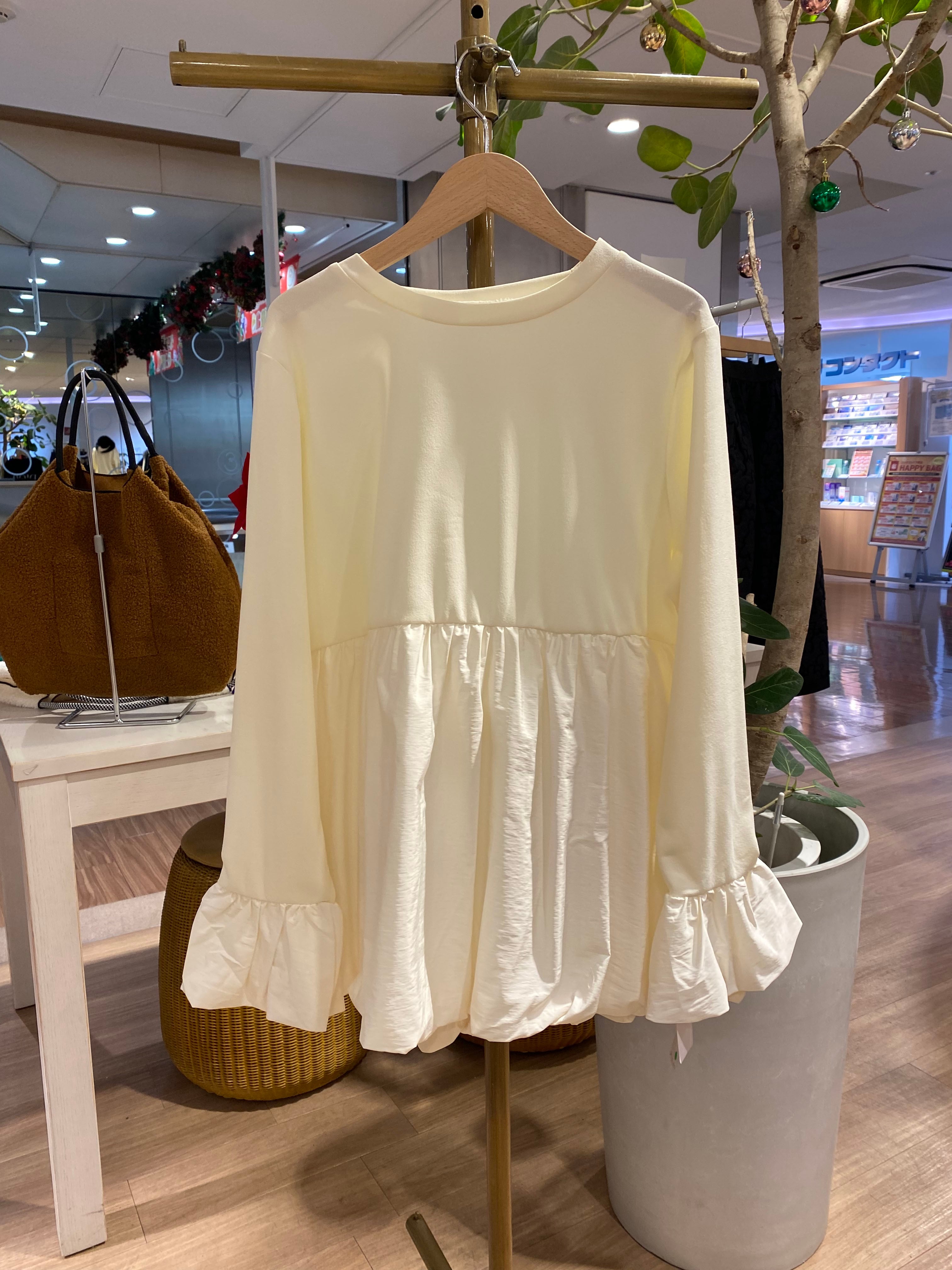 バルーンシルエット フレアスリーブトップス[Color:ホワイト]