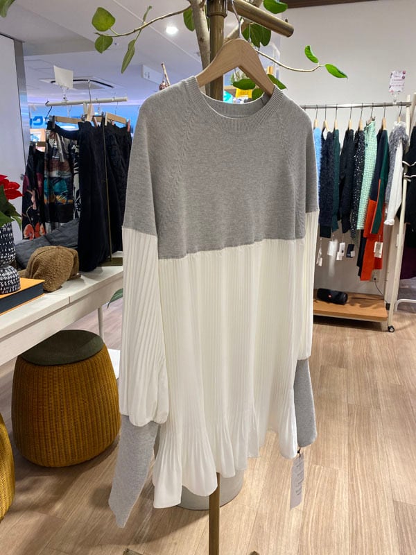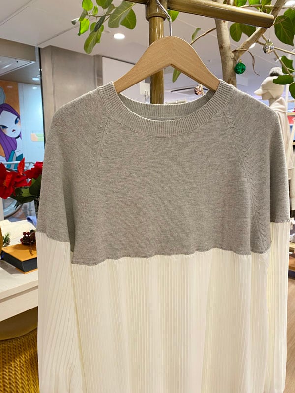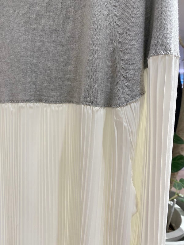 ニット部分はコットン、プリーツ部分はポリエステルと軽くて着心地はよいニット。