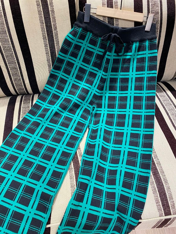カラー配色のチェック柄が大人っぽいニットパンツ。