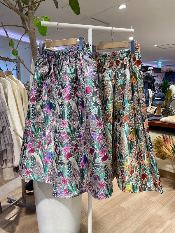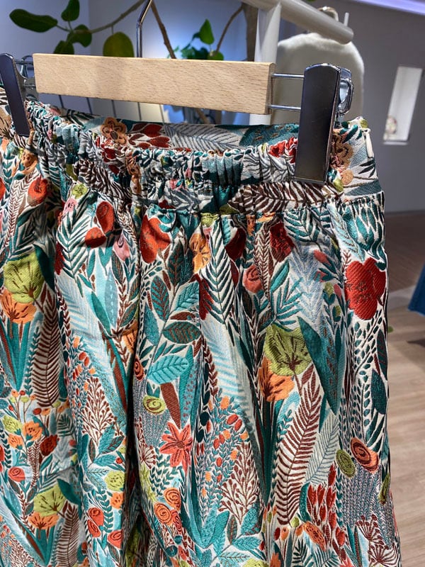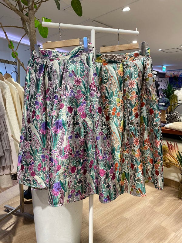 カラフルなボタニカル柄が印象的なジャガードスカート。