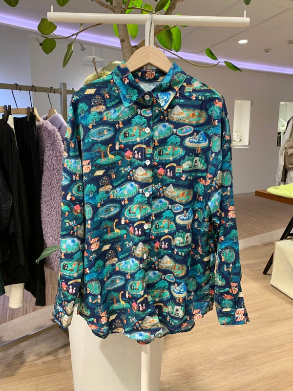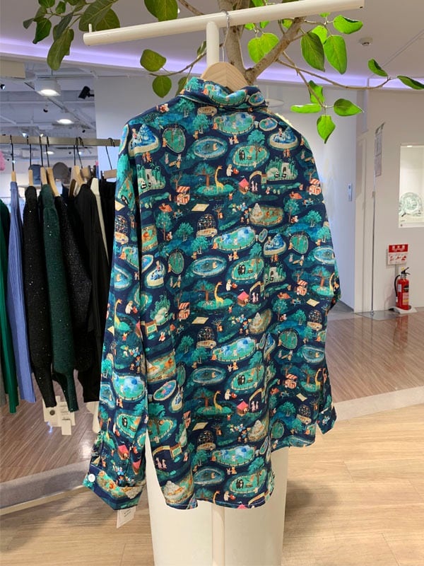 ブルーアニマル柄プリントブラウス[Color:ブルー]