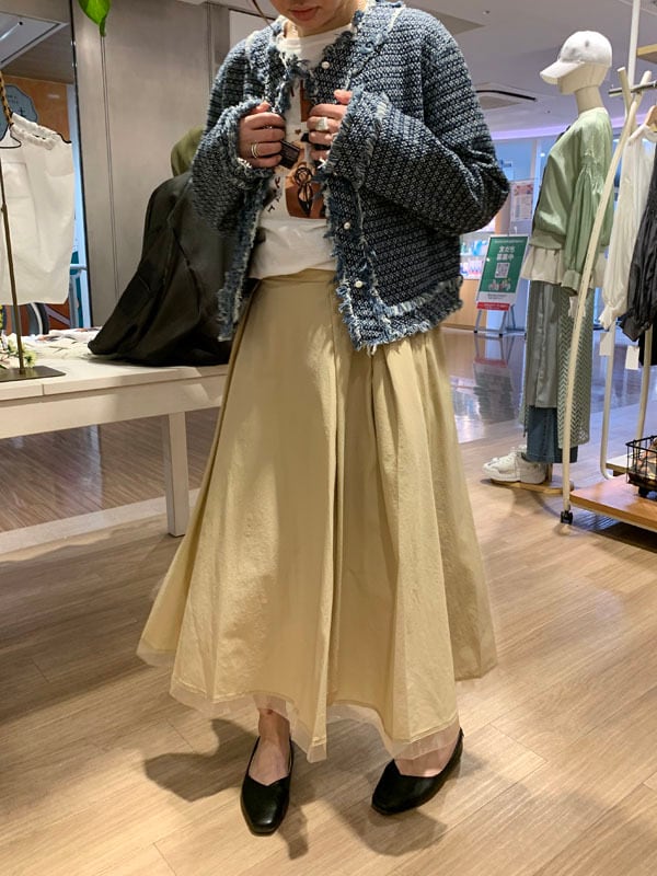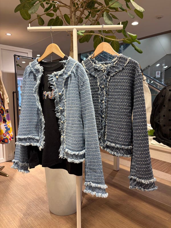 ▼Detail▼ 羽織るだけで旬なシルエットのデニムジャケット。 フリンジ感のサイドシルエットがシーズンムードを高めてくれます。 ▼Size▼ 着丈:約50cm 肩幅:約40cm 袖丈:約57cm 身幅:54cm コットン90% ポリエステル10% ※店頭と同時販売しているため、 ご注文のタイミングによっては売り切れる場合がございます。 その場合は、キャンセル手続きさせていただきますの あらかじめご了承ください。