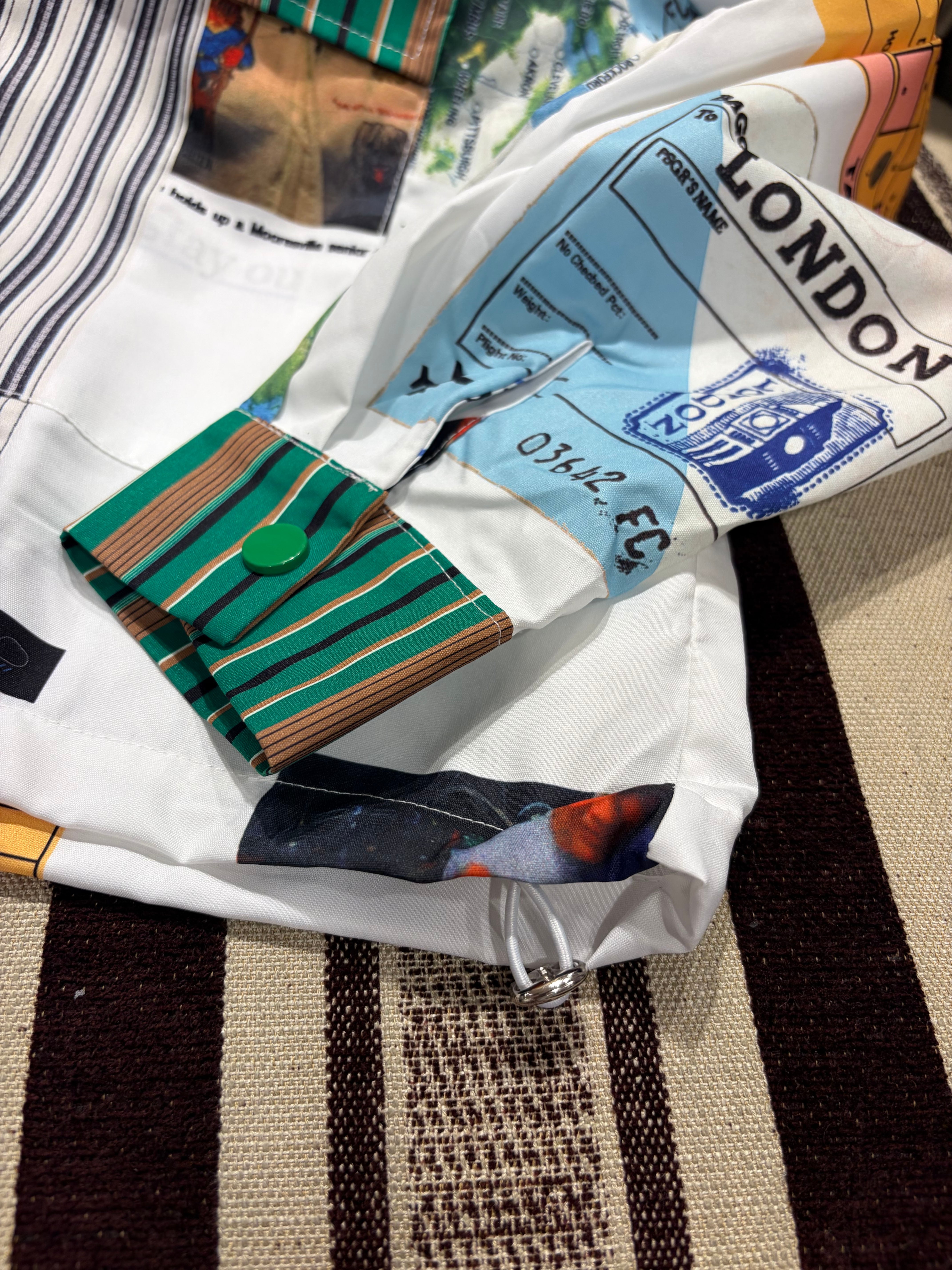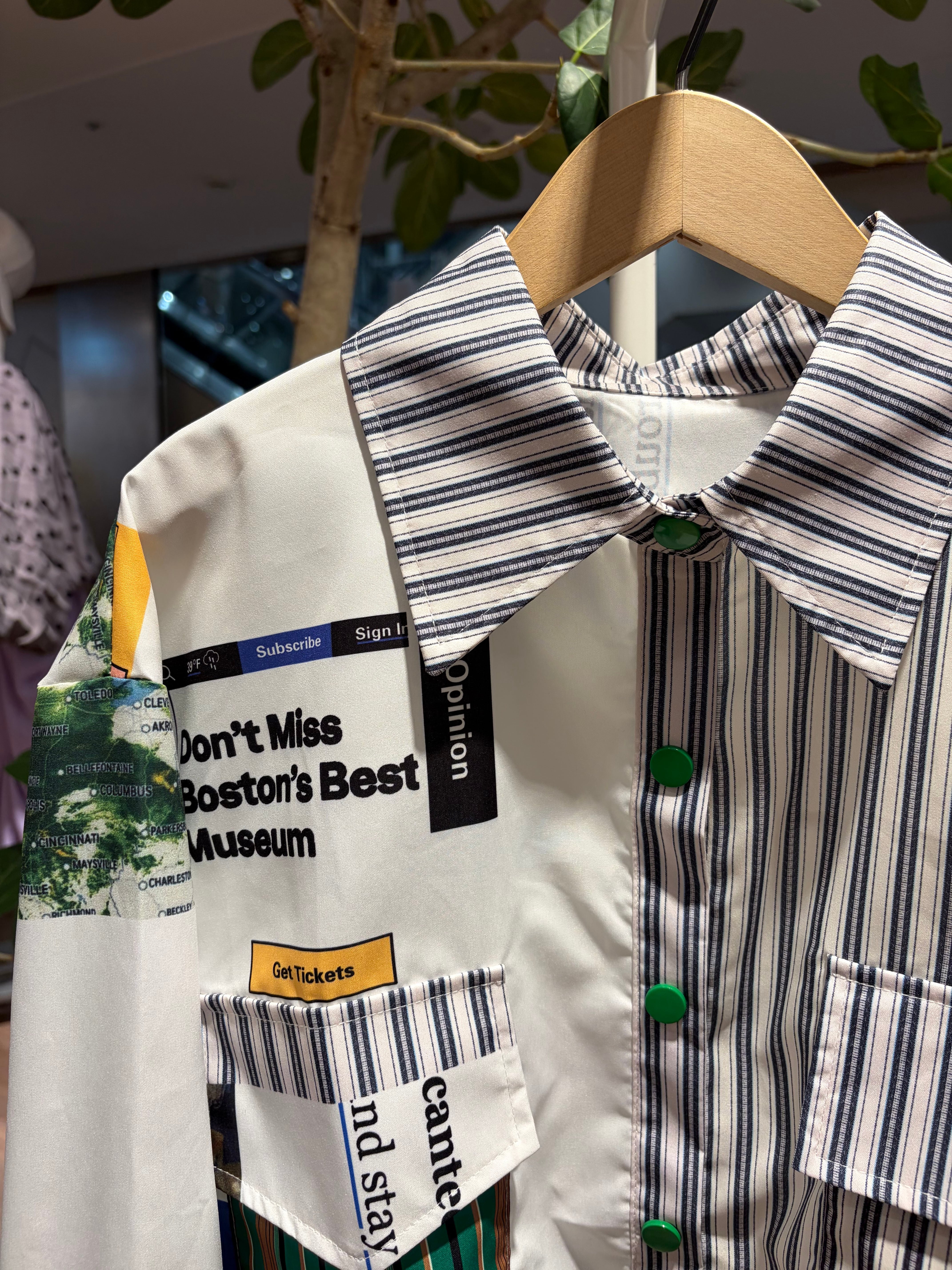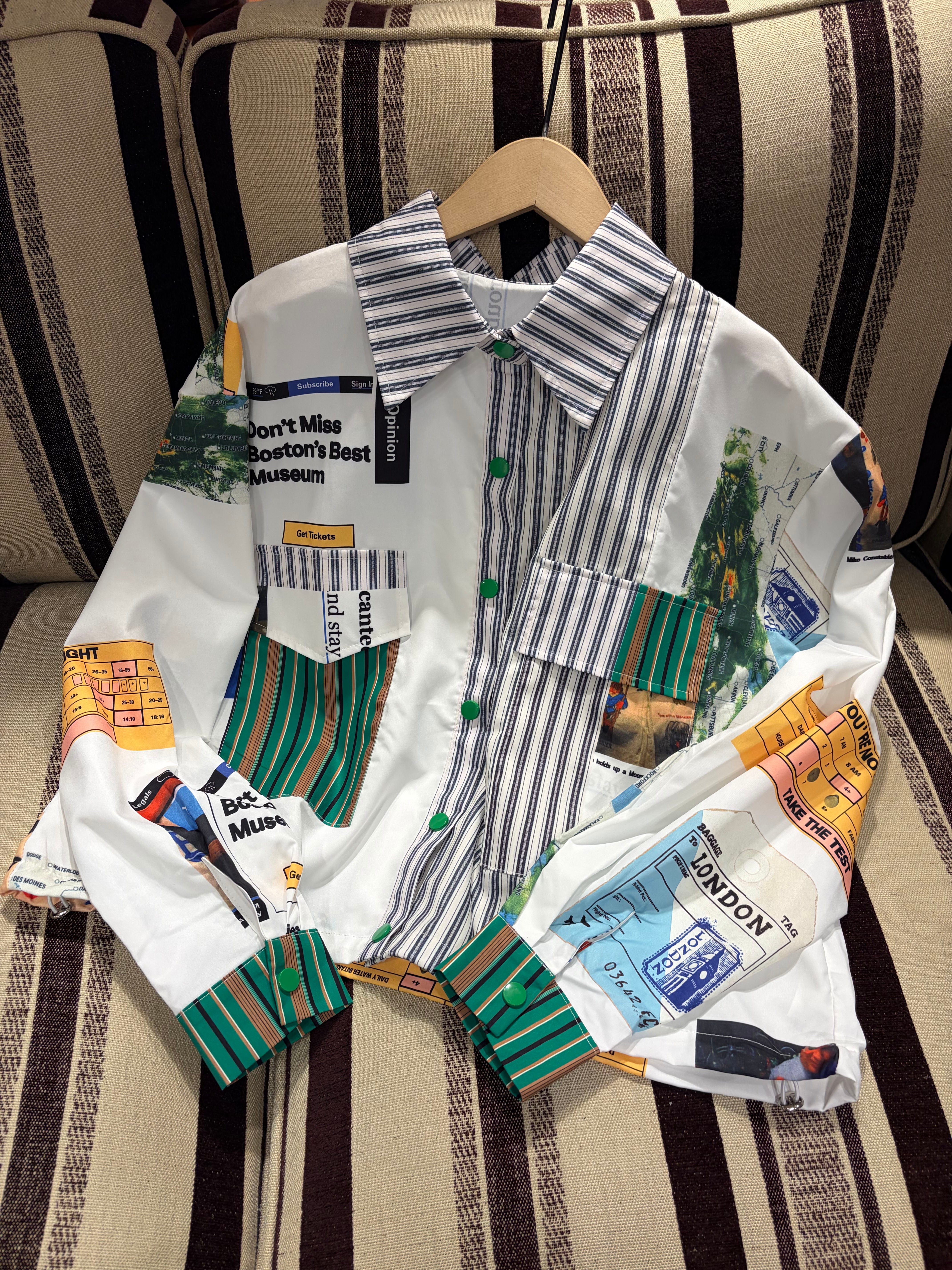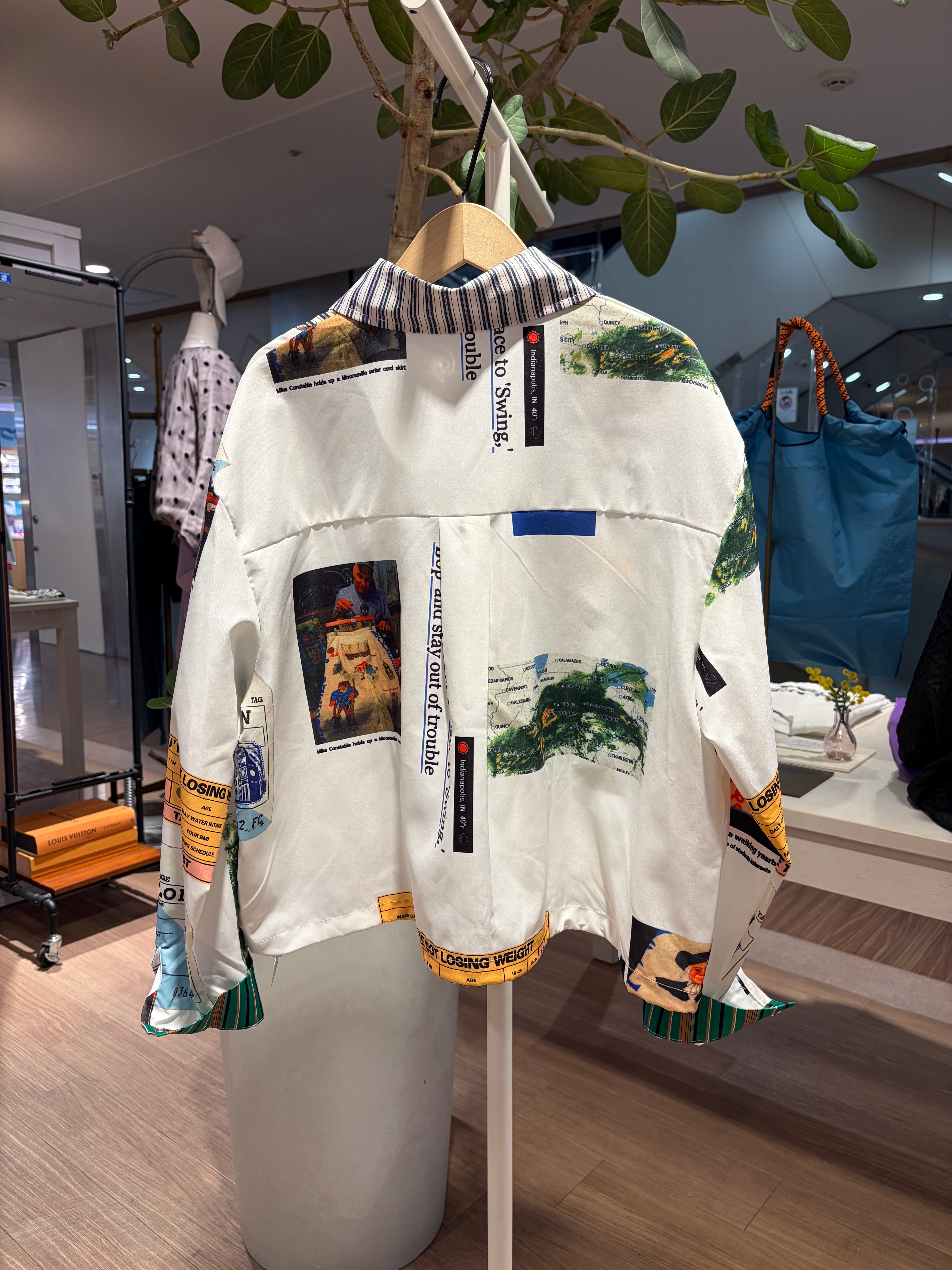 ポップでカラフルなロゴストライププリントの総柄長袖シャツブラウス