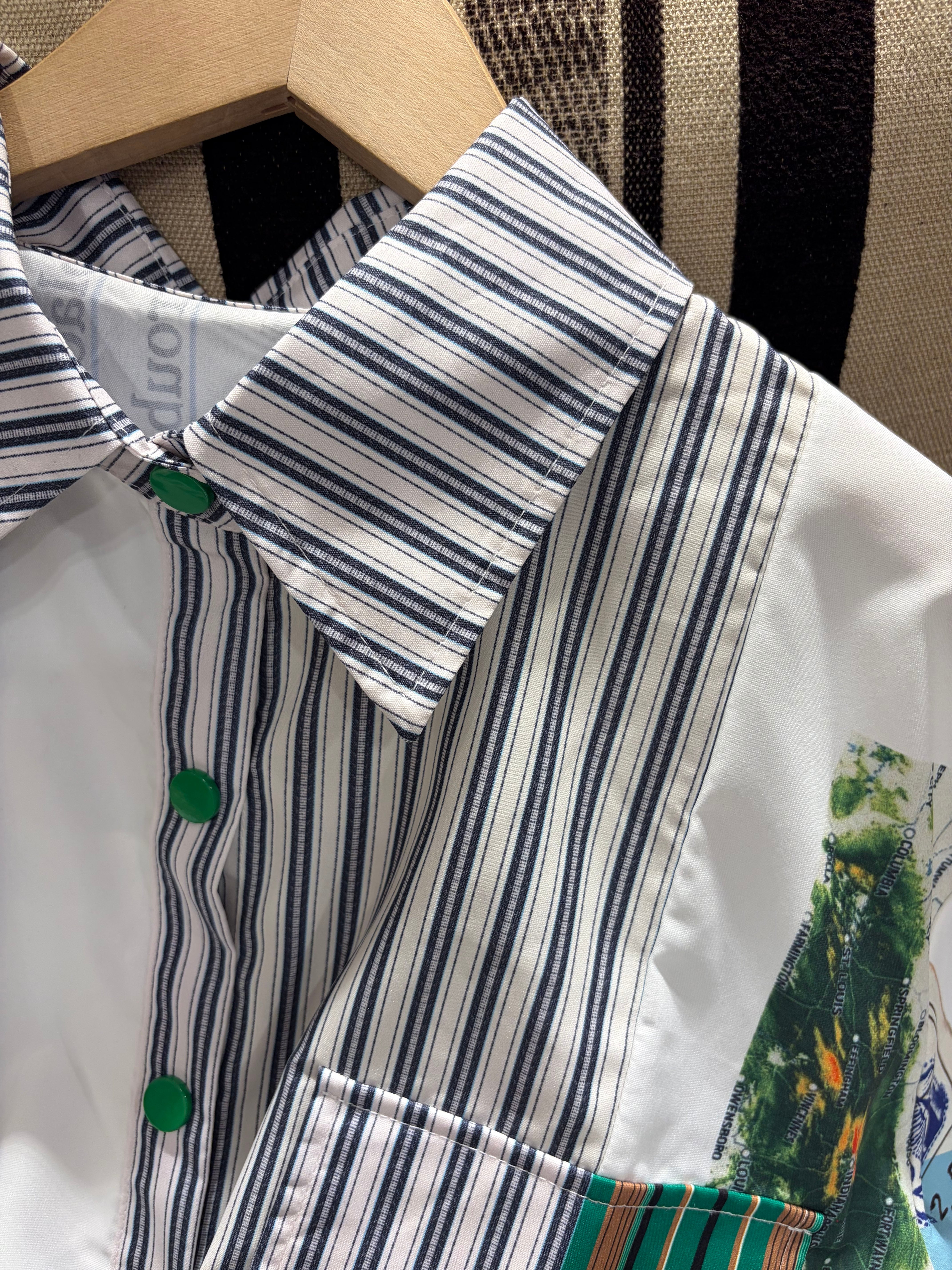 ロゴストライププリント裾ドロストシャツブラウス【color:ホワイト】