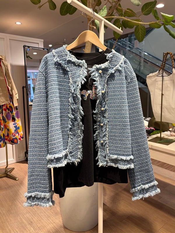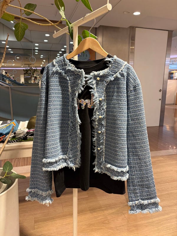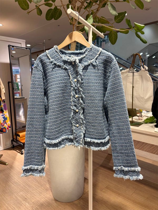 ▼Detail▼ 羽織るだけで旬なシルエットのデニムジャケット。 フリンジ感のサイドシルエットがシーズンムードを高めてくれます。 ▼Size▼ 着丈:約50cm 肩幅:約40cm 袖丈:約57cm 身幅:54cm コットン90% ポリエステル10% ※店頭と同時販売しているため、 ご注文のタイミングによっては売り切れる場合がございます。 その場合は、キャンセル手続きさせていただきますの あらかじめご了承ください。