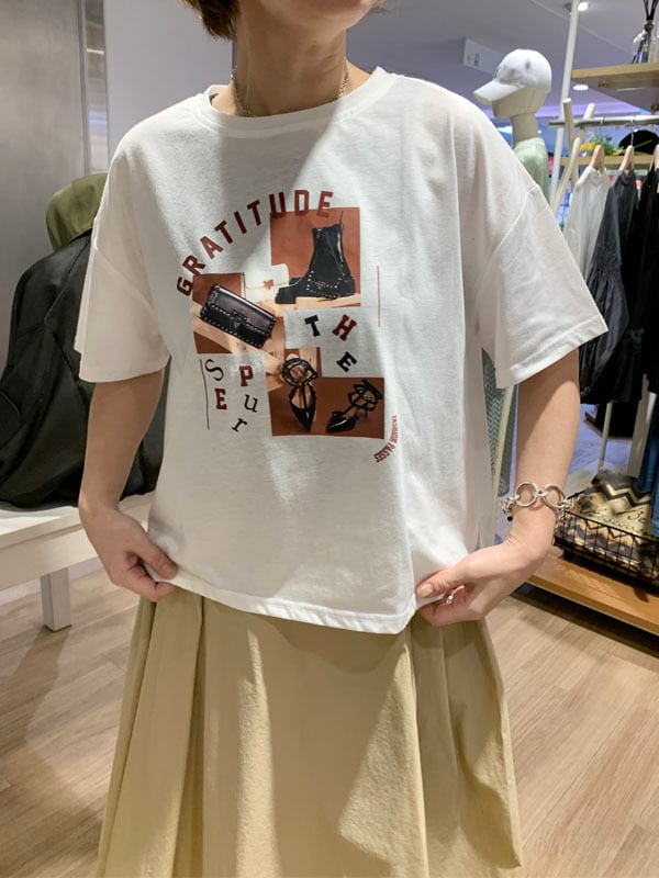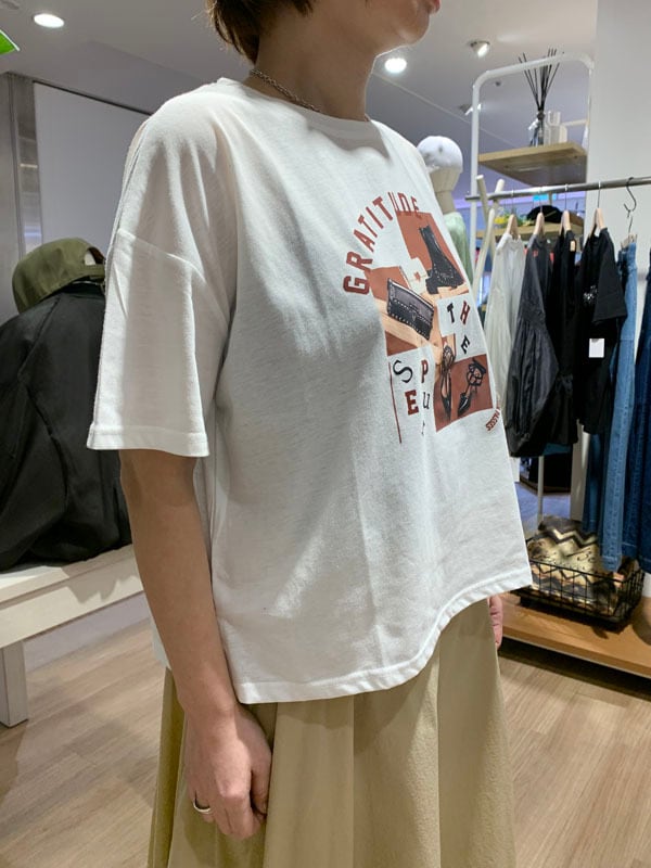 ▼Detail▼ これからのシーズンにぴったりの さらりとした生地が魅力◯ 程よいサイジングが 抜け感を出せるTシャツです。 ▼Size▼ 着丈約57cm、身幅約57.5cm、裄丈約47cm 【素材・成分】 ポリエステル65%、綿35% ※店頭と同時販売しているため、 ご注文のタイミングによっては売り切れる場合がございます。 その場合は、キャンセル手続きさせていただきますの あらかじめご了承ください。 モデル身長163cm