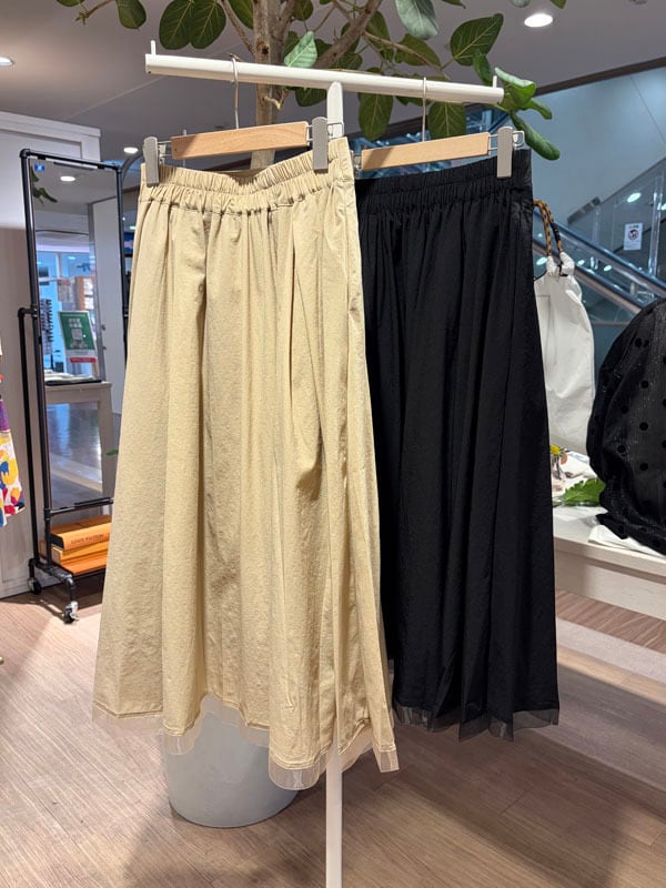 ▼Detail▼ 軽やかな素材感に 裾のさりげないチュールがポイントのスカート。 シンプルながら女性らしい 柔らかな印象を与えてくれるスカートです。 ▼Size▼ ウエスト約68cm〜約88cm、着丈約83cm ポリエステル95%、ポリウレタン5% ※店頭と同時販売しているため、 ご注文のタイミングによっては売り切れる場合がございます。 その場合は、キャンセル手続きさせていただきますの あらかじめご了承ください。 モデル身長163cm