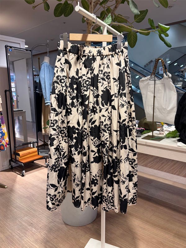 ▼Detail▼ フラワー柄が上品な大人なスカート。 Tシャツやカーディガンなど 様々なアイテムと合わせていただけます。 ▼Size▼ ウエスト約70cm〜約94cm、着丈約83cm 表地 綿65%、レーヨン35% 裏地 ポリエステル100% ※店頭と同時販売しているため、 ご注文のタイミングによっては売り切れる場合がございます。 その場合は、キャンセル手続きさせていただきますの あらかじめご了承ください。